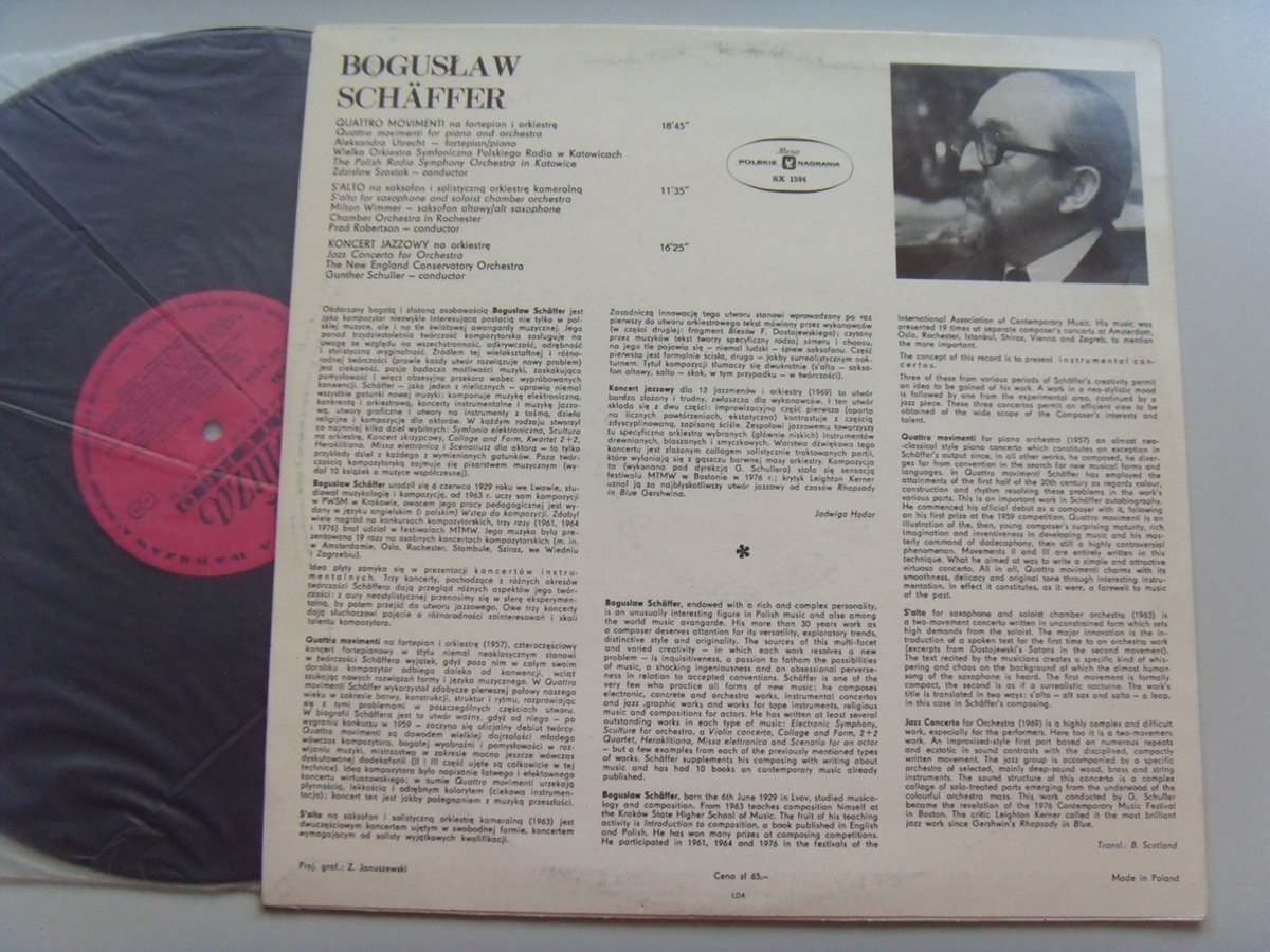 Boguslaw SCHAFFER - Quattro movimenti S'alto Koncert jazzowy (Item w09352)